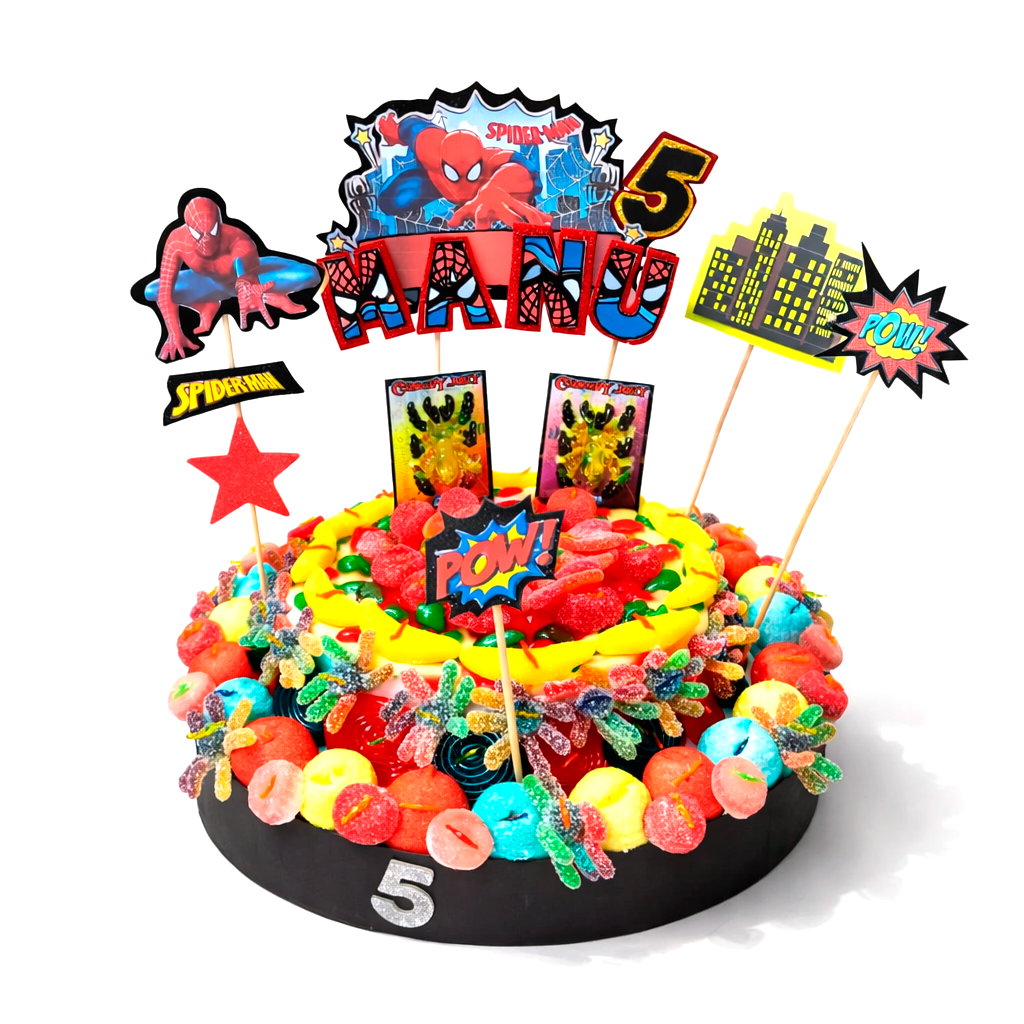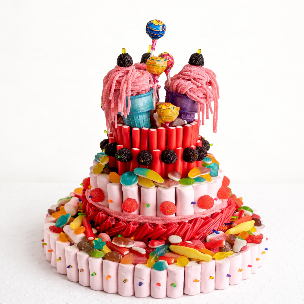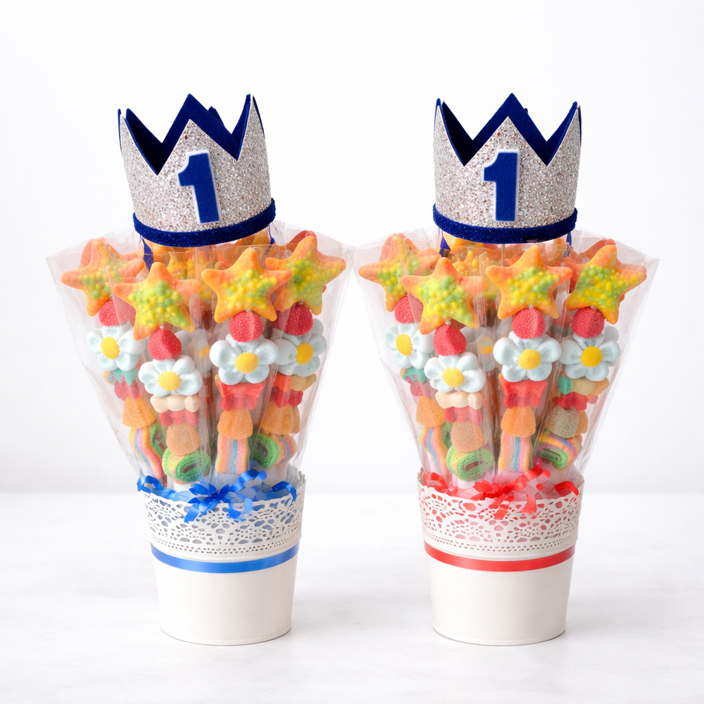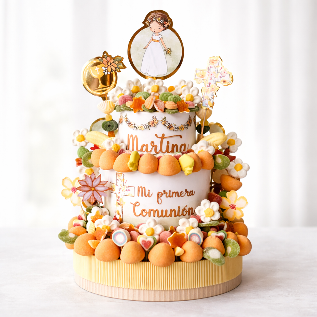 Tartas de chuches, regalos personalizados y decoraciones con globos diseñadas especialmente para tu evento, cumpleaños, comunión o celebración especial.